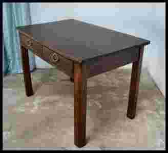 Biurko wykończone w kolorze ciemnego dębu w półmacie.