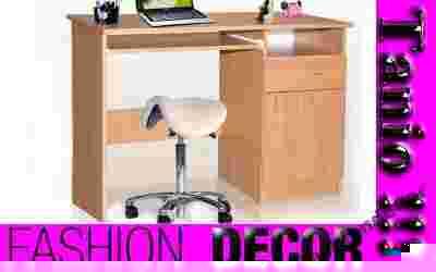 Małe biurko komputerowe wyposażone w wysuwany blat pod klawiaturę szafką oraz szufladą. Idealne do