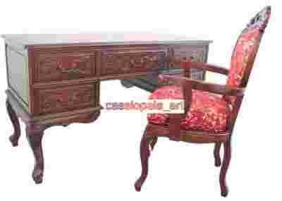 Biurko dwustronne + fotel rzeźbione lite drewno