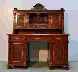 Biurko eklektyczne z nadstawką orzech po renowacji