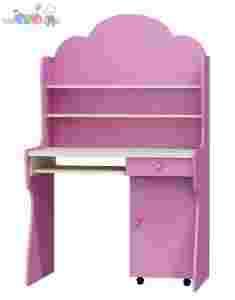 BIURKO z nadstawką. Wysokość biurka 160cm, blat na wysokości 75cm. Blat roboczy: 100x60cm. Nadstawka z półkami, biurko z półką na klawiaturę oraz kontenerkiem na kółkach, którym można ustawiać w dowolnym miejscu. Biurko z frezowanymi bokami pasującymi do zestawu FLOWER. Mebel wykonany z płyty MDF i płyty laminowanej. Dodatkowe elementy dekoracyjne (np. kolorowe, drewniane kwiatki) są doklejane na życzenie.