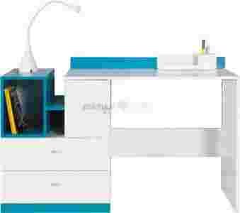 Biurko Mobi 11 to biurko tradycyjne, o standardowym designie. Ciekawe są za to jego elementy kolorystyczne. Jest to bowiem połączenie niebieskiego koloru z białymi elementami. Bryła ta ma dwie szersze półki od dołu. Solidny blat wskazuje na to, że będzie można być zadowolonym z używania tego produktu. W końcu mebel został zrobiony z wysokiej jakości płyty laminowanej oraz termoplastycznej okleiny ABS. Jest to biurko przeznaczone typowo do uczenia się. Dlatego ciągle podkreśla się jego sporą wartość pod kątem funkcjonalności.
