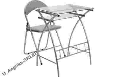 z szufladą na klawiaturę + składanym krzesłem.