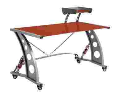 Biurko z półką szkło / metal / blokowane kółka