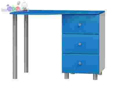 Biurko z zestawu NEMO. Biurko z trzema szufladkami. Blat na wysokości 73cm, szerokość 100cm głębokość 75cm. Biurko może być stosowane pod łóżkiem antresolą NEMO oraz może być ustawione samodzielnie (wtedy biurko ma w komplecie dwie satynowe nogi).