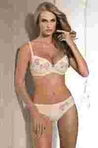 Delikatne, jasne tło i przepiękne, haftowane kwiaty w egzotycznym, szafranowym kolorze. Poznaj biustonosz, który na długo zostaje w pamięci. Prawdziwa kwintesencja kobiecości. Zmysłowy, wyszukany, elegancki. W tle subtelna koronka i drobne paski. Fason pozwala uwodzicielsko podkreślić piersi - cudownie unosi je, przybliżając ku sobie. W zestawie (wyjmowane) poduszeczki push up, które dodatkowo optycznie powiększą biust o jeden rozmiar.