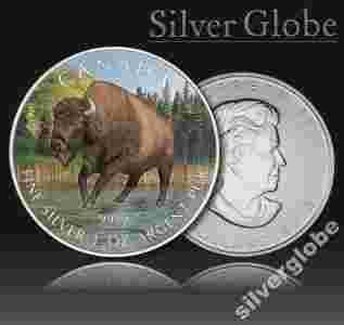 BIZON KANADA 2013 SREBRO KOLOR 1 OZ ETUI