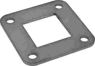 Blacha montażowa 80x80x4mm do słupka kwadratowego 40 x 40 mm. Montaż na powierzchniach poziomych, otwory 4 x 8,3mm. Elementy spawane. Materiał stal czarna surowa.