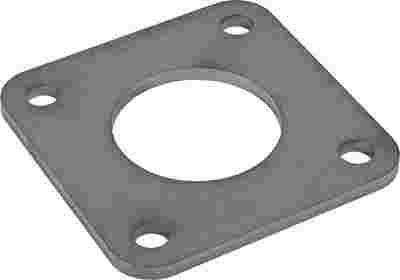 Blacha montażowa 80x80x4mm do słupka o średnicy 42mm (1 1/4 cala). Montaż na powierzchniach poziomych, otwory 4 x 8,3mm. Elementy spawane. Materiał stal czarna surowa.