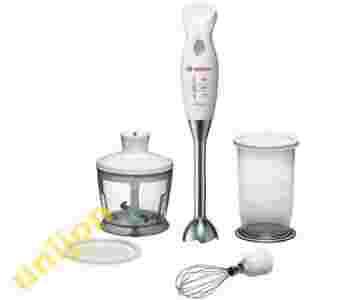 Blender, 350 W posiada rozdrabniacz z nożem i końcówkę do ubijania ze stali szlachetnej oraz pojemnik do miksowania z pokrywką.