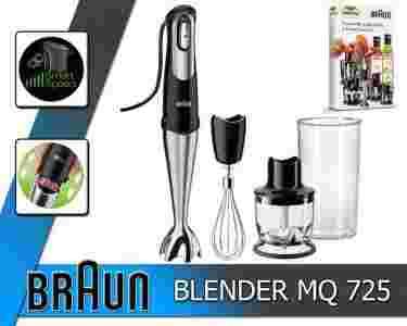 Blender Braun Multiquick 5 Omelette 7 MQ725 jest doskonałym asystentem podczas przygotowania podstawowych, ale czasochłonnych potraw. W pudełku znajdziesz: 600 ml pojemnik z miarką,350 ml z pojemnik sikający i trzepaczkę ze stali nierdzewnej. Dzięki tym akcesoriom nie tylko zmiksujesz zupę czy ubijesz pianę ale także bez problemu w 5 sek. przygotujesz zioła czy w 15 sek. zetrzesz twardy ser. Kiedy skończysz, po prostu odłącz stopkę lub przystawkę i umyj. Niemieckie pochodzenie i technologia Braun gwarantują długoletnią pomoc w Twojej kuchni.