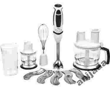 Dzięki blenderowi Braun MR 6550 MFP można szybko przygotować zupy, sosy, jedzenie dla dzieci, koktajle i wiele innych potraw. Ma 15 szybkości pracy i funkcję turbo, co umożliwia wybranie odpowiedniej prędkości dla danego zadania miksowania.