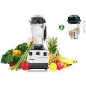 Koniec z niewygodnymi i przestarzałymi mikserami, blenderami i robotami w Twojej kuchni. Vitamix SUPER TNC 5200 to urządzenie, które łączy w sobie możliwości 8 * różnych kuchennych urządzeń używanych przez każdego z nas w swojej kuchni. Ten wyjątkowy blender stojący blenduje, miksuje, kroi na małe kawałki, ale także wytwarza przepyszne sorbety. A jeśli chcieliby Państwo włączyć do swego menu również ciepłe pożywienie, Vitamix SUPER TNC 5200 nie tylko wyczaruje ciepłe, czy letnie zupy w stylu Raw food, ale także przygotuje gorące zupy w zaledwie kilka sekund!