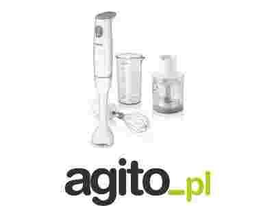 Blender marki Philips o mocy 550 W, posiada trzepaczkę do ubijania oraz pojemnik z ostrzem miksującym o pojemności 0,5 l. Użytkowanie ułatwia pojedync...