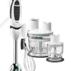 Końcówka do miksowania, końcówka do ubijania (trzepaczka), tarcze do krojenia i ścierania, pojemnik do rozdrabniania z pokrywką, ostrze do rozdrabniania/siekania, pojemnik do siekania z pokrywką, kielich do miksowania z pokrywą, instrukcja obsługi w języku polskim, karta gwarancyjna