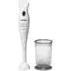 Blender ręczny Siemens model MQ5B150N o mocy 300 W, z 1 prędkością pracy, końcówką miksującą z tworzywa sztucznego, wyposażony w kubek do miksowania.