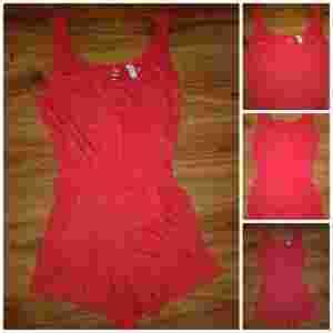 Dodatkowe informacje: Stan: Używany Marka: Atmosphere Rozmiar: 40 (L) Wzór dominujący: Kwiatki Krój, fason: Na ramiączkach, Na szelkach, Szorty Kolor: Odcienie czerwieni, Inny kolor