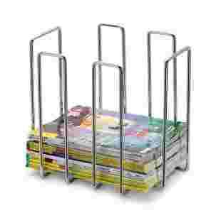 Solidny gazetnik wykonany z chromowanego metalu. Pozwoli uporządkować prasę w jednym miejscu.