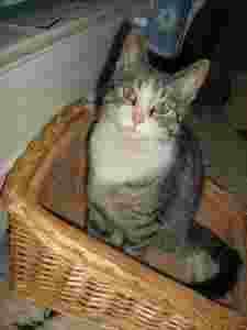 Kotek ma ok. 1-1,5 roku i jest przekochany, uwielbia leżeć przytulony do człowieka. Ma chyba wyrwaną ze stawu tylną łapkę i wielki krwiak na stopie, nie wiadomo czy są tam pazurki, bo wszystko spuchnięte, jedna wielka miazga. Podejrzewamy, że mógł się albo powiesić na czymś i ratując się - wyrwał sobie łapkę w stawie, albo potrącił go samochód. Na razie dostał antybiotyk, leki przeciw bólowe, no i Stronghold, bo ma okropnego świerzbowca. Jutro będziemy robić rtg i okaże się, czy łapka jest do uratowania czy trzeba będzie amputować, bo i taką ewentualność wet bierze pod uwagę - kotek nie ma czucia w łapce."