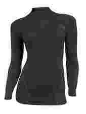 Bluza damska SOFT MERINO wykonana w technologii bezszwowej, z dwuwarstwowej, oddychającej dzianiny. Dzięki zastosowaniu połączenia polipropylenu w warstwie wewnętrznej z naturalnymi włóknami wiskozy i wełny w warstwie zewnętrznej dzianina jest bardzo miękka, elastyczna i przyjemna dla skóry. Posiada wyjątkowo wysokie właściwości wchłaniania wilgoci wyrównując przy tym różnice temperatur oraz zachowując wysoką termoizolacyjność. Struktura siatki w miejscach o wzmożonej potliwości (pod pachami) wspomaga transport wilgoci. Wzmocnienia na łokciach pomagają uniknąć otarć i dodatkowo ocieplają. Bezuciskowe ściągacze przy nadgarstkach, szyi oraz na biodrach ograniczają ryzyko przedostawania się zimnego powietrza pod dzianinę. Szerokie strefy RIB wzdłuż linii tali zapewniają idealne dopasowanie do sylwetki i gwarantują swobodę ruchów. Dzianina antyalergiczna – nie powoduje uczuleń i podrażnień oraz bakteriostatyczna – hamuje powstawanie brzydkich zapachów. Bluza średniej grubości polecana do sportów zimowych lub wszelkich aktywności w bardzo niskich temperaturach.