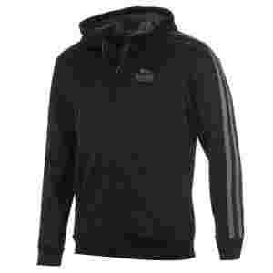 Młodzieżowa bluza dresowa z kapturem w czarnym kolorze. Wykonana w 100% z poliestru. W całości zapinana na suwak. Dół i rękawy zakończone ściągaczami. Po bokach znajdują się dwie kieszenie zapinane na suwaki. Od wewnątrz pokryta cienką warstwą polaru. Na lewej piersi znajduje się logo Lonsdale. Całość uzupełniają szare paski na rękawach, oraz szary polar wewnątrz kaptura. Doskonała do noszenia na co dzień, jak i na zajęcia sportowe.