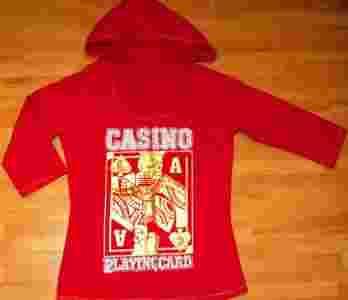 Super fajna bluza z kapturem -czerwona z cyrkoniami wokół srebrnych napisów i aplikacją w kolorze złota, rękaw do łokcia, 95% bawełna,5% spandex, co powoduje,że fajnie naciąga się, z tyłu na dole lekko wycięta,stan bardzo dobry- polecam...