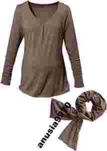 BLUZKA CIĄŻOWA + SZAL 52/54 BRĄZOWY NOWE