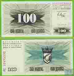 BOŚNIA 100 Dinara 1992 P13a UNC FC