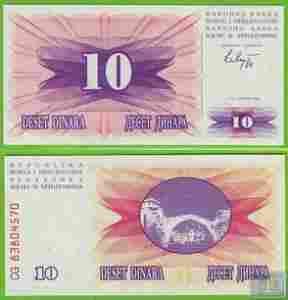 BOŚNIA 10 Dinarów 1992 P10a UNC CG