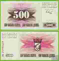 BOŚNIA 500 Dinara 1992 P14a UNC DB