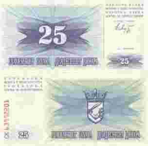 Bośnia i Her. 25 Dinarów P-11 1992 Stan UNC
