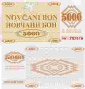 Bośnia i Her. 5000 Dinarów P-9 1992 Stan UNC