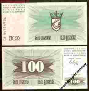 Bośnia i Herc. - P- 13 - 100 dinar - 1992 - seria