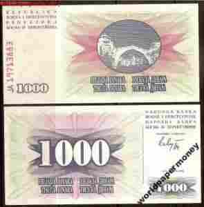 Bośnia i Herc. - P- 15 - 1000 dinar - 1992 - s. JA