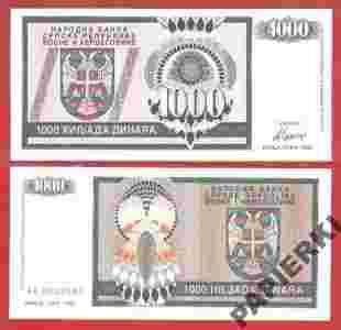 Bośnia i Hercegowina 1000 Dinara 1992 P-137a UNC