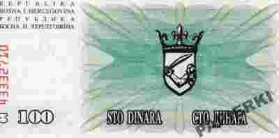 Bośnia i Hercegowina 100 Dinara 1992 UNC