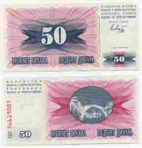 BOŚNIA I HERCEGOWINA 1992 50 DINARA