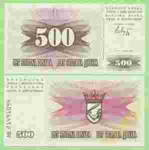 Bośnia i Hercegowina , 500 Dinara 1992 , P14 , UNC