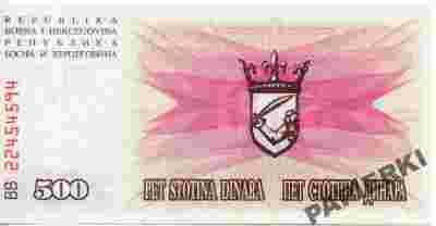 Bośnia i Hercegowina 500 Dinara 1992 P-14a