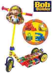 Bob Budowniczy trójkołowa hulajnoga z tajemniczą szufladą zawierającą 4 figurki pojazdów z bajki.