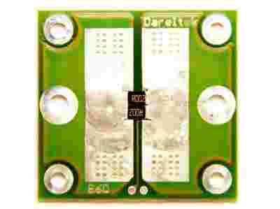 Bocznik 60A/60mV wykonany z rezystorów bezindukcyjnych SMD 1% 50ppm na dwustronnym 2mm laminacie epoksydowo-szklanym ze 100um grubością ścieżek. Do wyprowadzeń pomiarowych jest dolutowany kątowy goldpin. Dodatkowo mogą być dolutowane rezystory kalibracyjne w celu osiągnięcia minimum 0,5% dokładności.