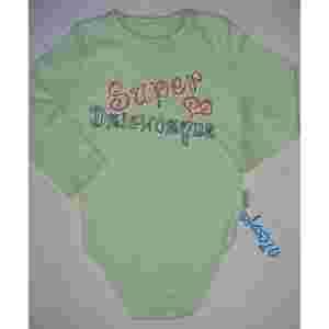 Oferujemy body polskiej firmy BAMAR NICOL w rozmiarze 86, wkładane przez główkę z dwiema napami przy szyi. Ubranka z napisem „super dziewczyna” - żółte i zielone (jak na zdjęciu).