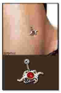 *BODYART* Kolczyk do pępka srebrny z ozdobą coral