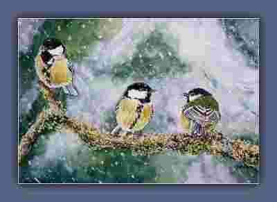 Bogatkowe trio -akwarela A4 ptaki Gal.Astry