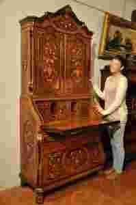 Charakteryzuje się wspaniale zdobioną, mistrzowsko wykonaną intarsją. Składający się z dwóch części, w formie nastawionych na siebie jednoskrzydłowych szafek, bogato dekorowanych intarsjowanymi motywami floralnymi, wsparte na czterech nóżkach. Szafki, półeczki o profilowanych bokach podstawa z pełnym wybrzuszeniem.