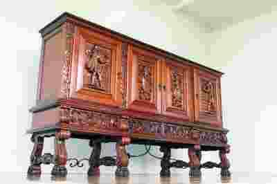 BOGATO RZEŹBIONĄ KOMODĘ  w stylu RYCERSKIM.