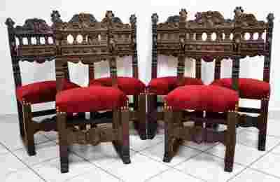 BOGATO RZEŹBIONE DĘBOWE KRZESŁA NEORENESANSOWE