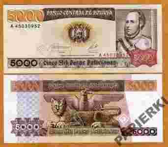 Boliwia 5000 Pesos Bolivianos 1984 P-168 UNC