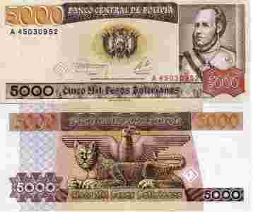 Boliwia 5000 Pesos P[zasłonięte]168 19 Stan I UNC