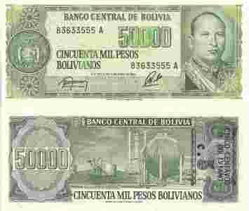 Boliwia 5 centów/50 000 Pesos Bolivanos P-196a UNC
